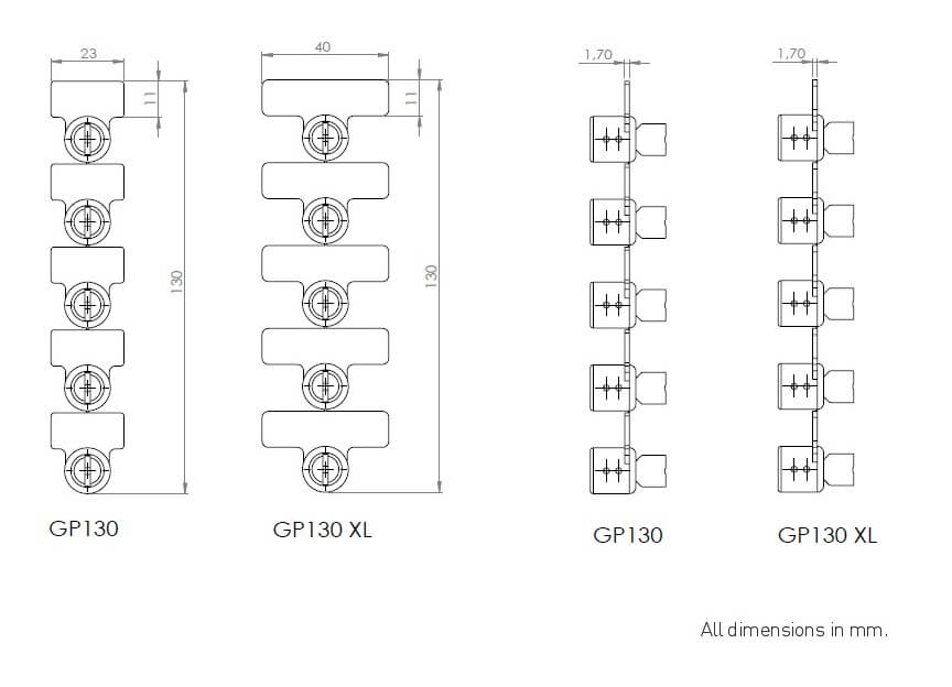 • Opsiyonel bayrak ölçüleri: MD130: 23mm ve MD130-XL: 40mm